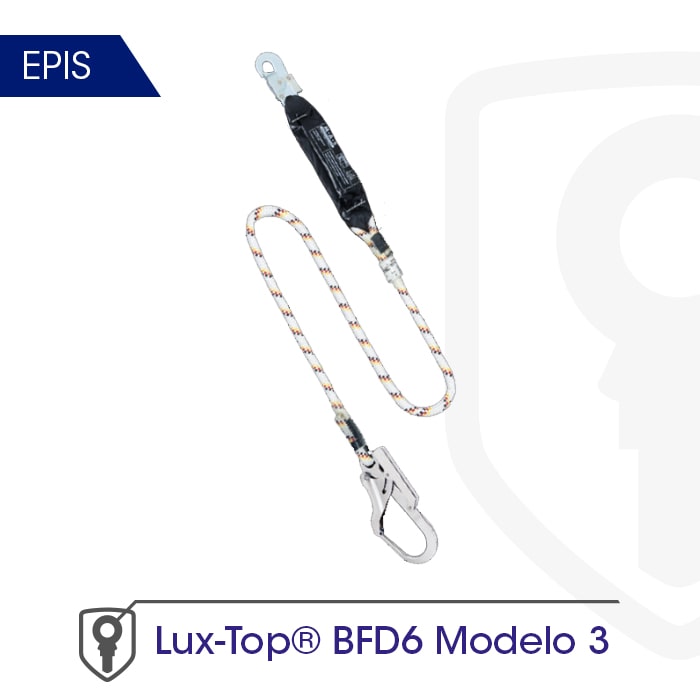 Cabo de 1,5 -2 m de longitud, con cuerda de 16 mm de diámetro. Con cierre de acero y absorvedor de energía. Cierre de acero en una punta con absorvedor de energía y gancho de acero MAS 50 con ancho de apertura de 54 mm en la otra punta. Puede ser utilizado de forma horizontal o vertical.