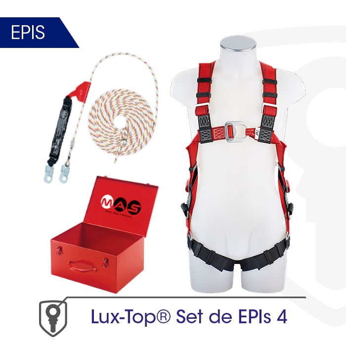Incluye arnés de seguridad MAS 30, cabo de anclaje MAS SK12 (15M), y maletín para guardar el equipo. Arnés de Seguridad MAS 30 Anclaje MAS SK12 Maletín